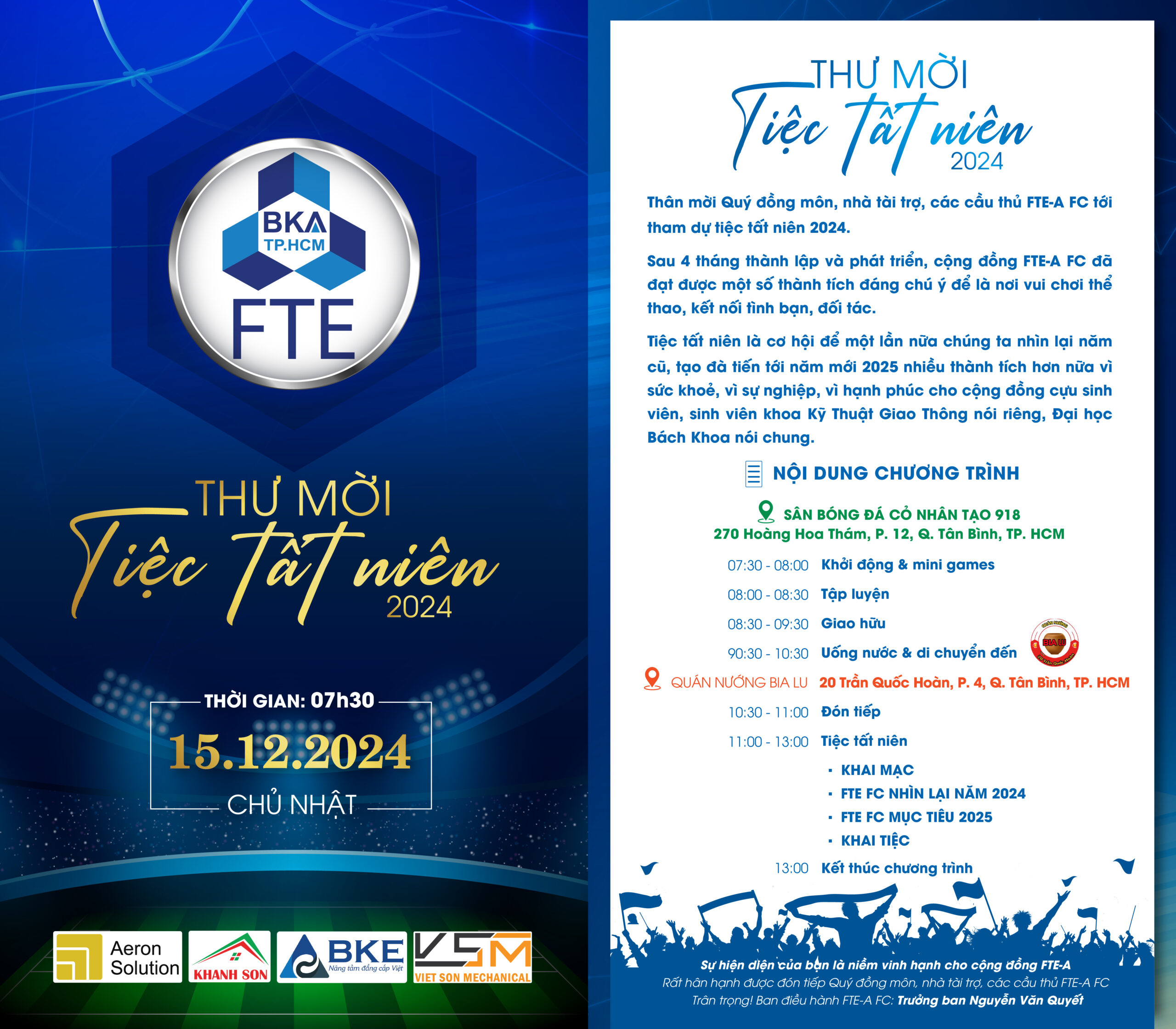Trong tiệc tất niên đầm ấm ngày 15/12/2024, đội banh FTE-A FC liên tiếp nhận 3 tin vui đầu năm 2025.